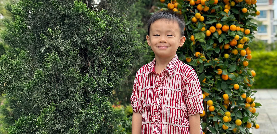Meet DX, beaming in our Hanacaraka Batik Shirt! His mum, a batik enthusiast herself, appreciates choosing classic pieces that are not only perfect for special celebrations like weddings, family events, and Chinese New Year, but also durable and comfortable enough for DX's everyday life. In his free time, DX loves drawing – his house walls are completely covered with his artwork!