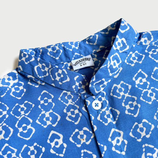 Kawung Two Tone Blue Batik Shirt