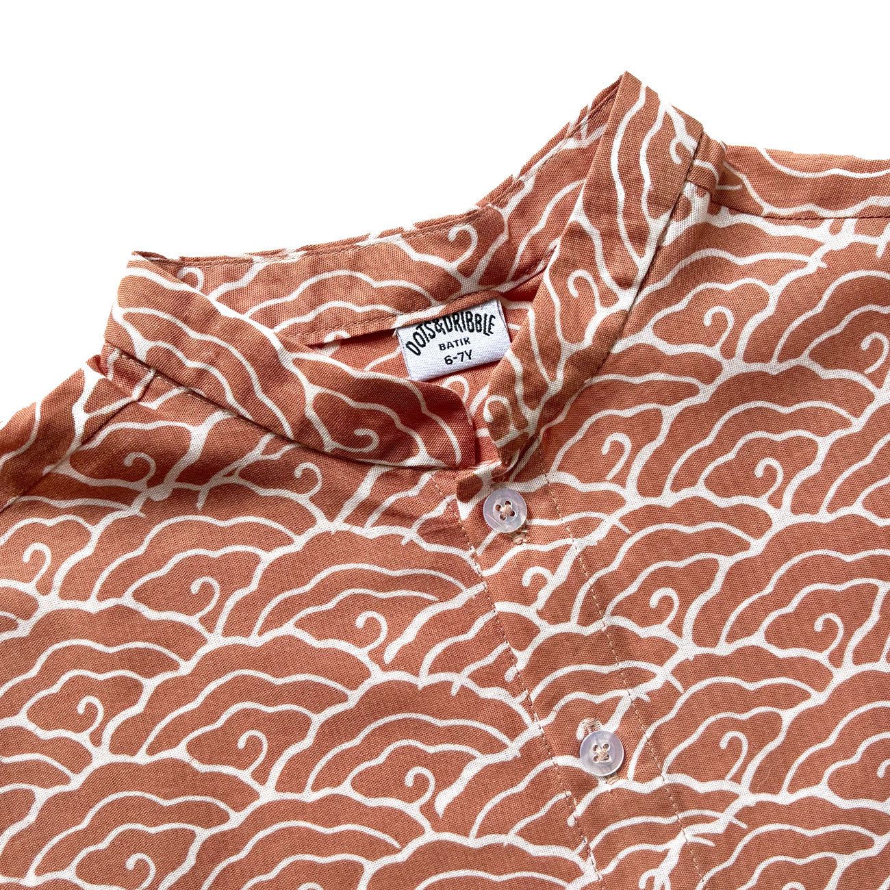 Celebrate Lunar New Year with our stylish mandarin collar Mega Mendung Batik Shirt. This modern take on the traditional motif features clouds, known to symbolize resilience, leadership, and care. With a comfortable and relaxed fit, this shirt is perfect for your little one.